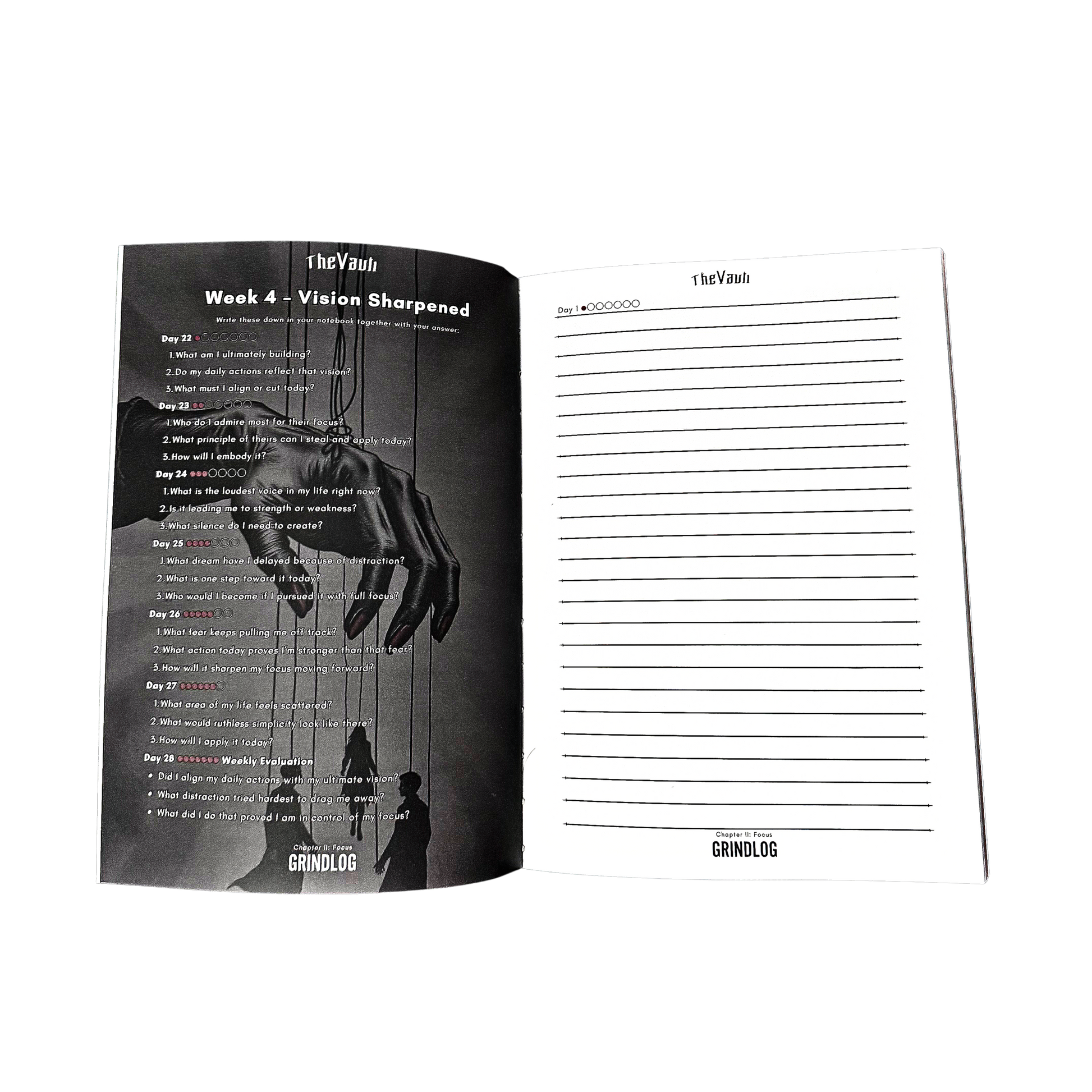Inside lies a 150-day tactical system forged to sharpen focus, discipline, and inner power. Brutal daily prompts strip away weakness and force you into clarity.